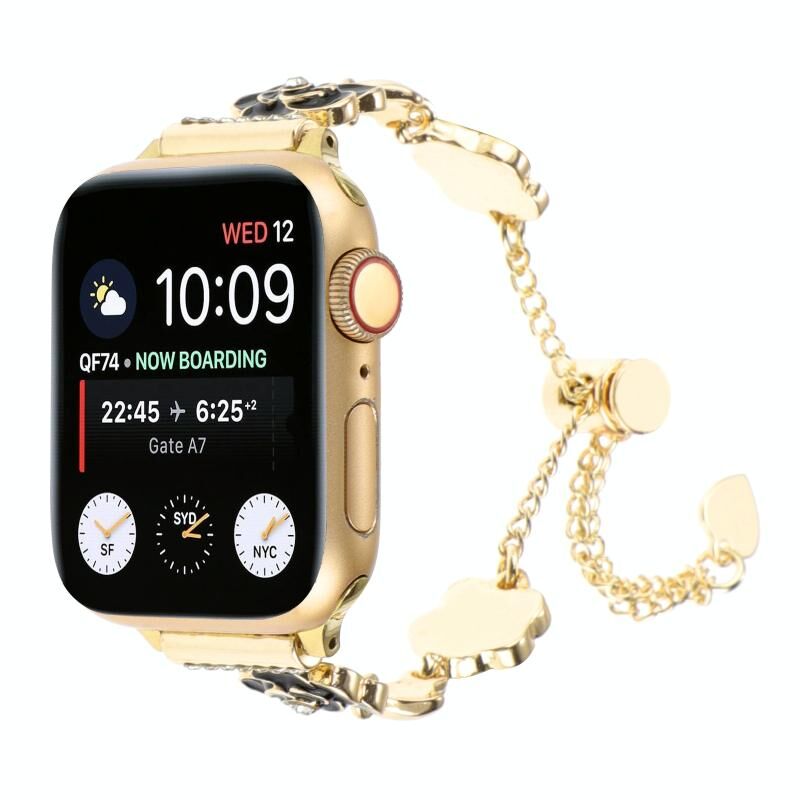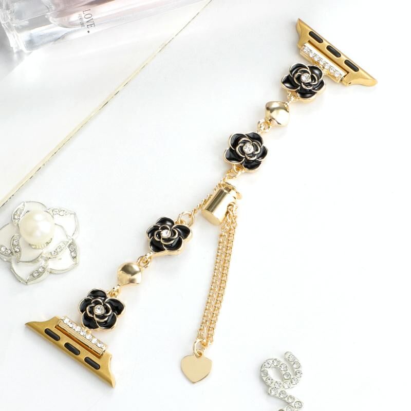 Για Apple Watch SE 2023 40mm Μπρασελέ βραχιόλι με αλυσίδα από μέταλλο Καμέλια (Μαύρο Χρυσό)