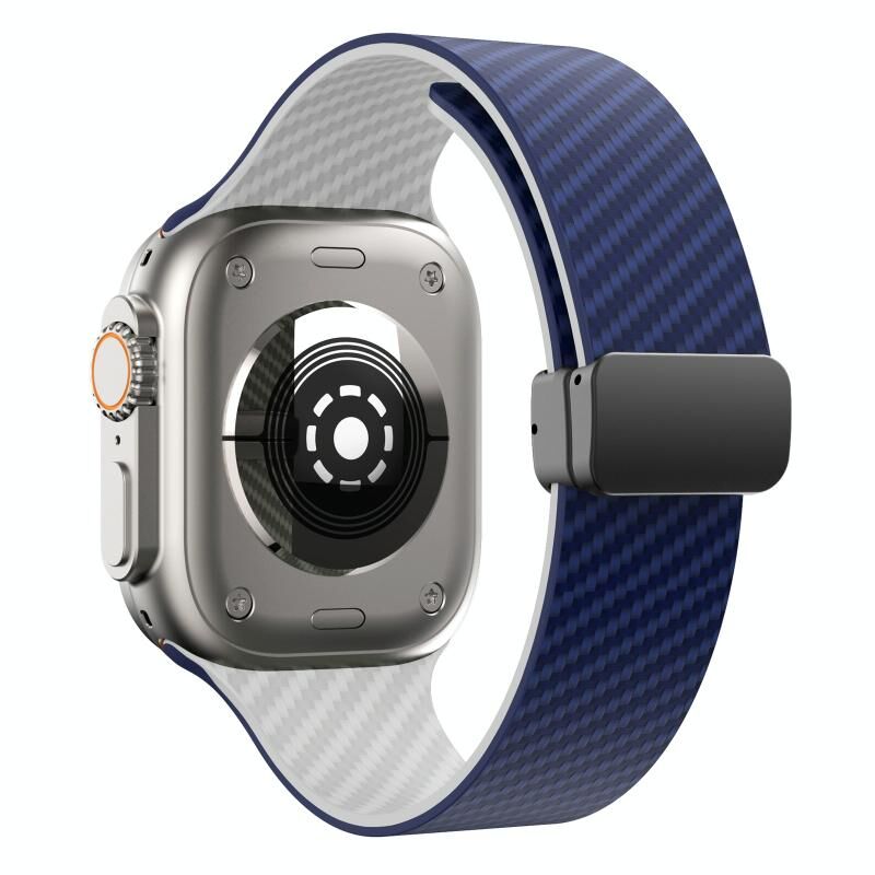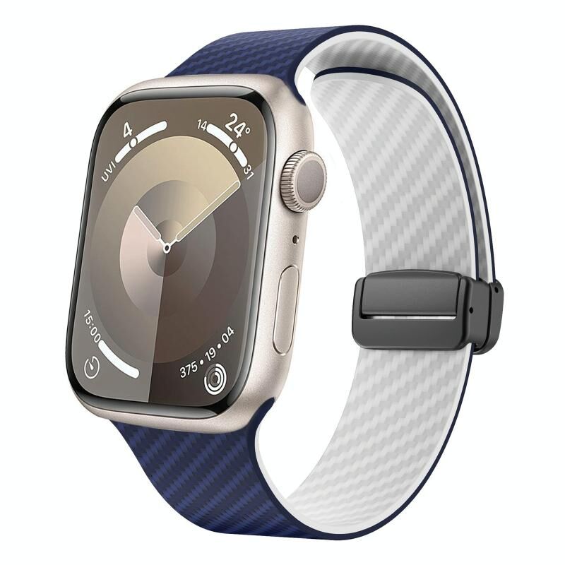 Για Apple Watch SE 2023 40mm Λουρί ρολογιού από ανθρακονήματα με Μαγνητική Αγκράφα Μαύρου Χρώματος (Βασιλικό Μπλε Λευκό)