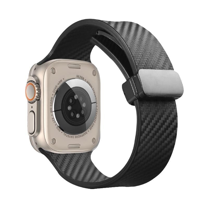 Για Apple Watch SE 2023 40mm Λουρί Σιλικόνης με Μαγνητικό Κούμπωμα σε Σχέδιο Ίνας Άνθρακα (Μαύρο)