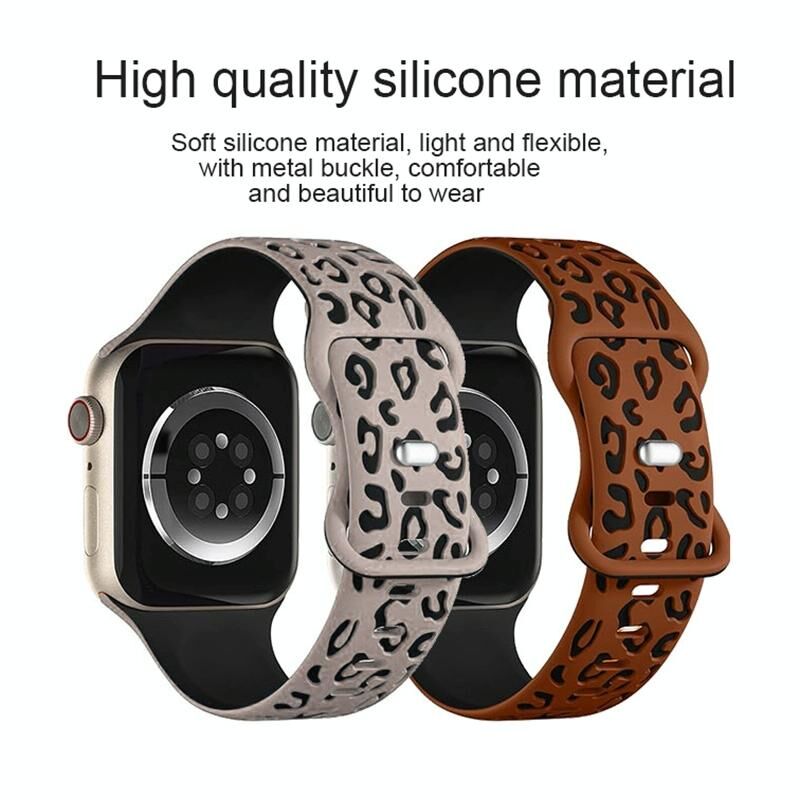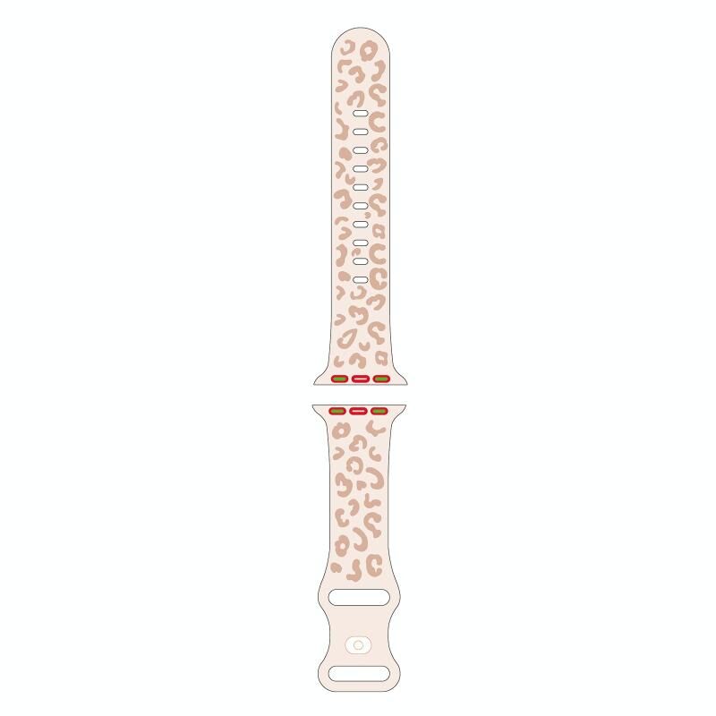 Για Apple Watch SE 2023 40mm Κυρτό Λουρί Σιλικόνης με Εκτύπωση Λεοπάρδαλης (Starlight Milk Tea)
