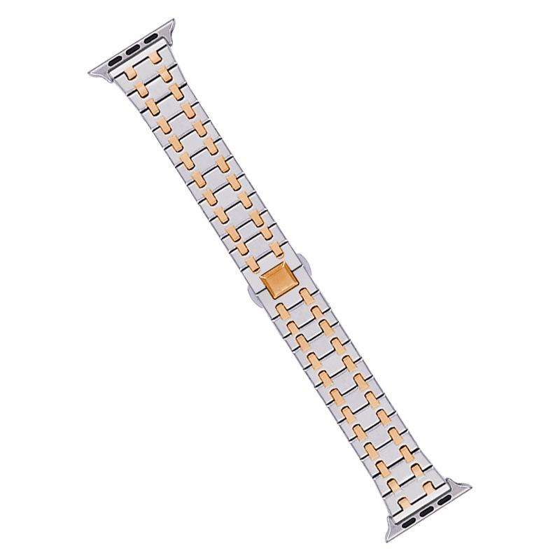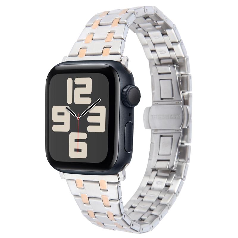 Για Apple Watch SE 2023 40mm Διπλό Δαχτυλίδι από Ανοξείδωτο Ατσάλι (Ασημί Ροζ Χρυσό)