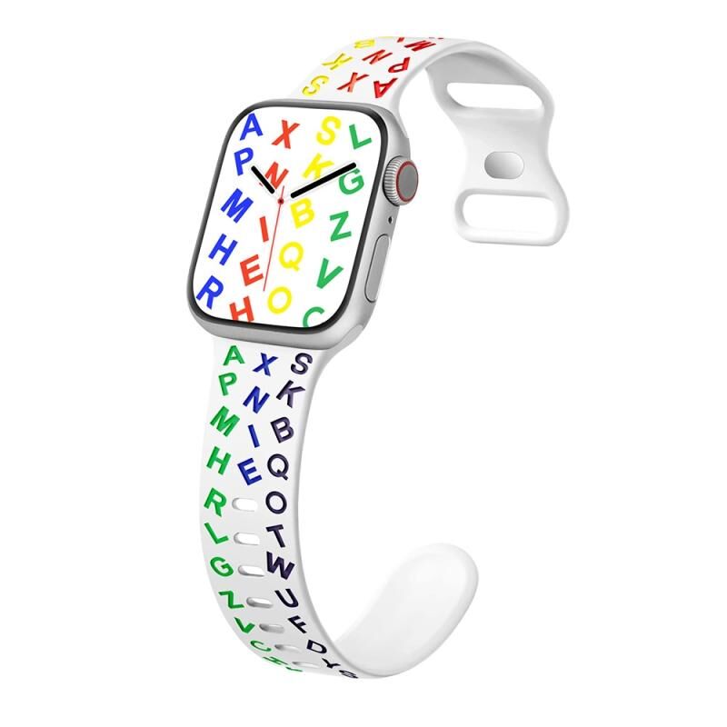 Για Apple Watch SE 2023 40mm Λουράκι Σιλικόνης με Αγκράφα Πεταλούδας σε Αγγλικό Στυλ (Λευκό Πολύχρωμο)