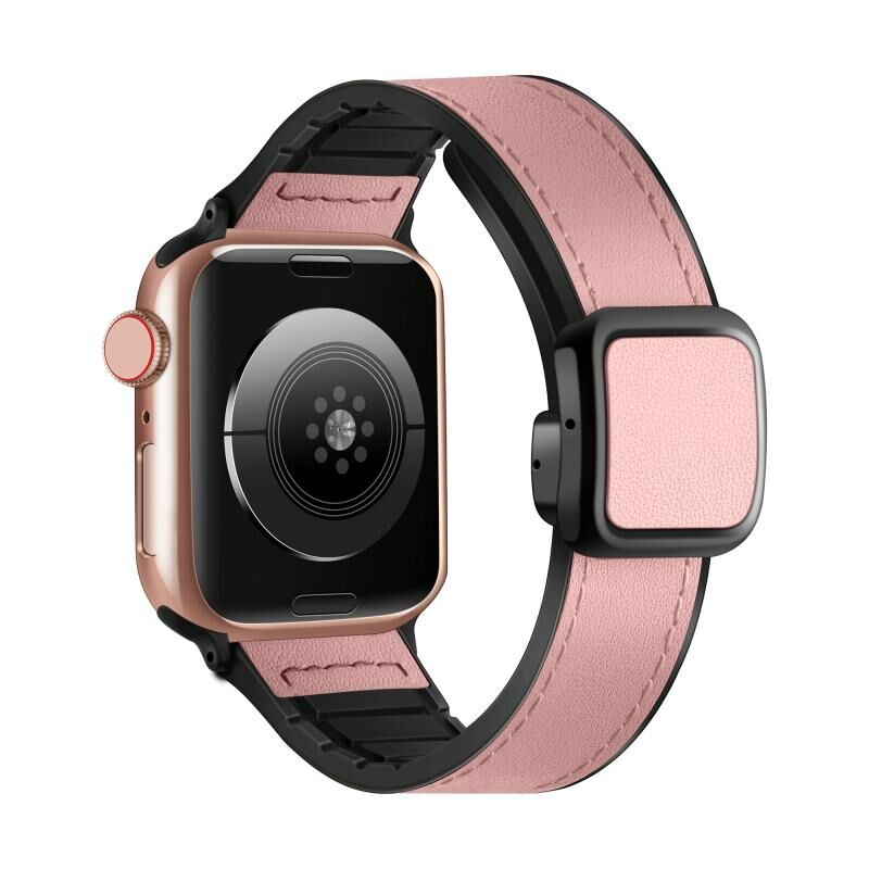 Για Apple Watch SE 2023 40mm Διπλού Υφάσματος Μαγνητική Τετράγωνη Αγκράφα Λουρί Σιλικόνης PU (ρόζ)