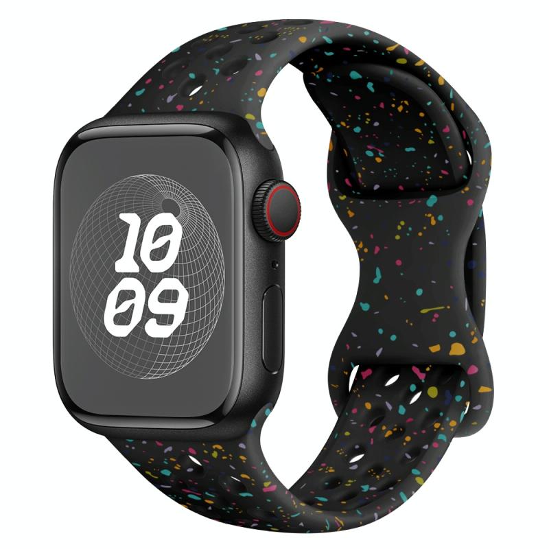 Για Apple Watch SE 2023 40mm Λουράκι Σιλικόνης με Στυλ Τρύπας και Αγκράφα Πεταλούδας Καμουφλάζ (Μαύρο)