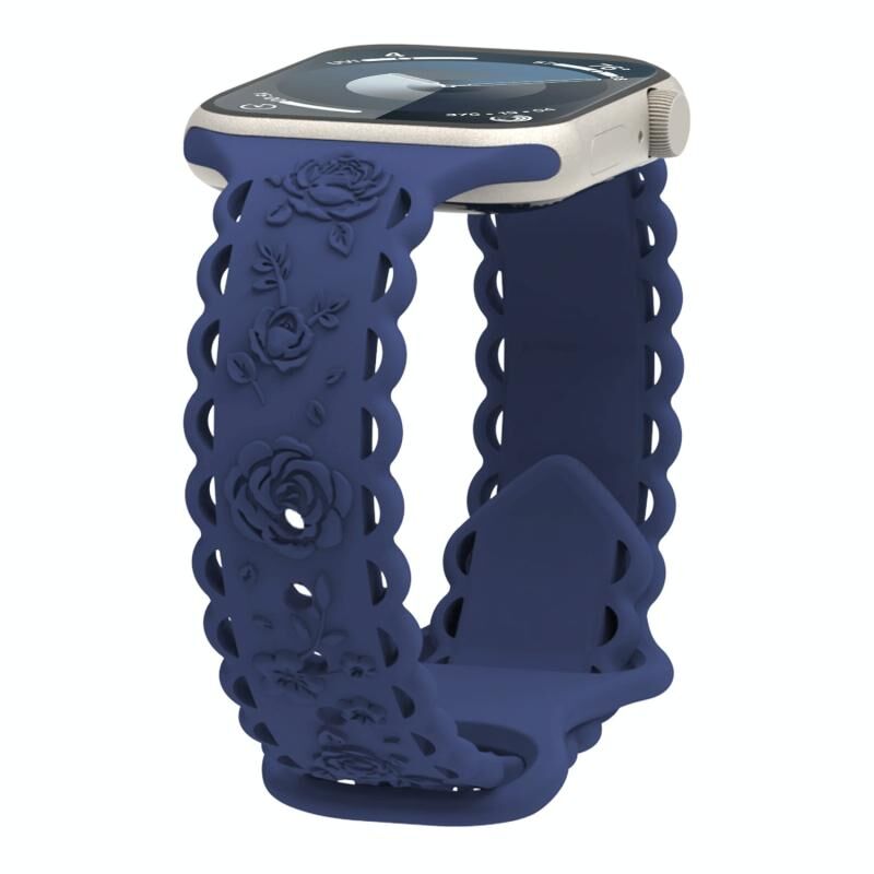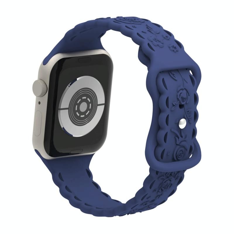Για Apple Watch SE 2023 40mm Δαντέλα 3D Ροζ Χαραγμένο Λουράκι Σιλικόνης (Μαύρο)