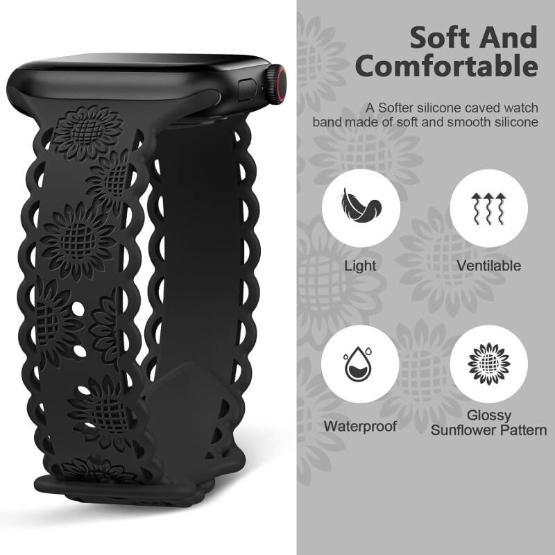 Για Apple Watch SE 2023 40mm Δερμάτινο Λουρί Σιλικόνης με Δαντέλα και Ηλιοτρόπιο (Μαύρο)