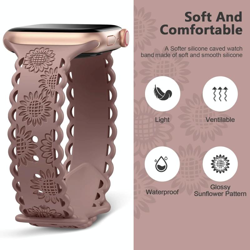 Για Apple Watch SE 2023 40mm Δερμάτινο Λουρί Σιλικόνης με Δαντέλα και Ηλιοτρόπιο (Μαύρο)