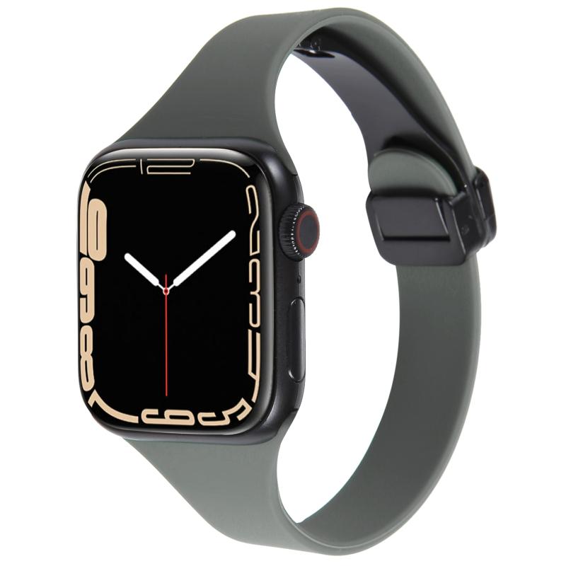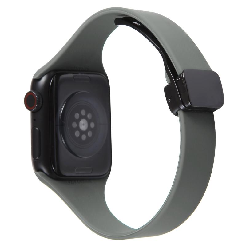Για Apple Watch SE 2023 40mm Μαγνητική Αγκράφα Λεπτό Λουράκι Σιλικόνης για Ρολόι (Χακί πράσινο)