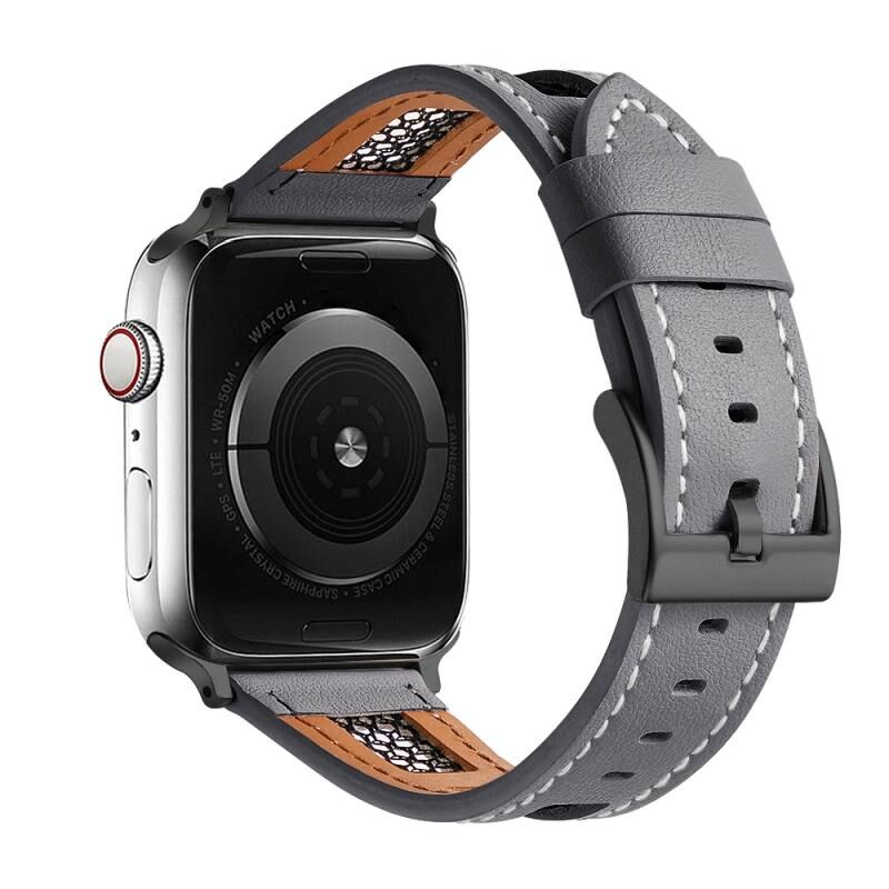 Για Apple Watch SE 2023 40mm Μπρασλέ Λουρί από γνήσιο δέρμα μοσχαριού πλέγματος (Γκρι)