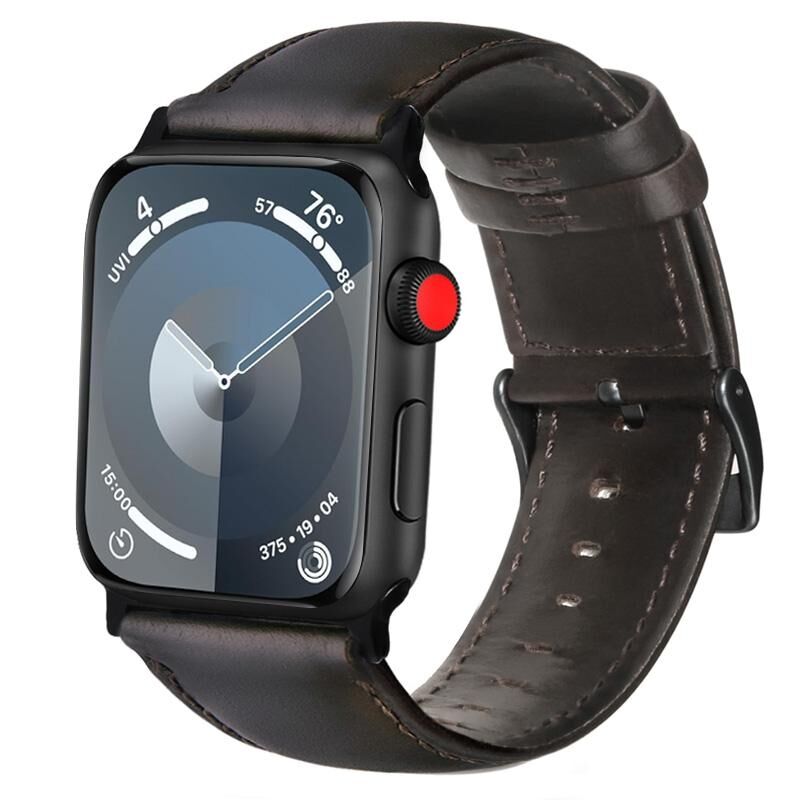 Λουρί ρολογιού για Apple Watch SE 2023 40mm από γνήσιο δέρμα με κερί λαδιού (Σκούρο καφέ)