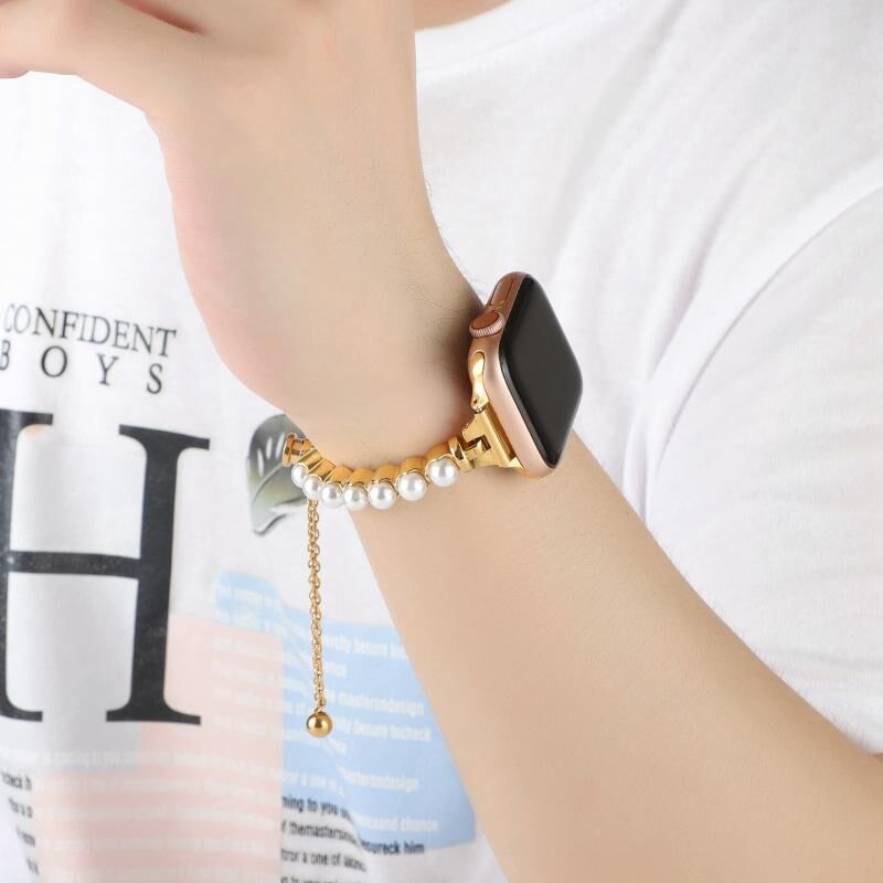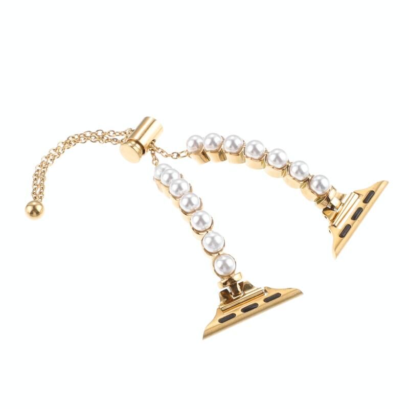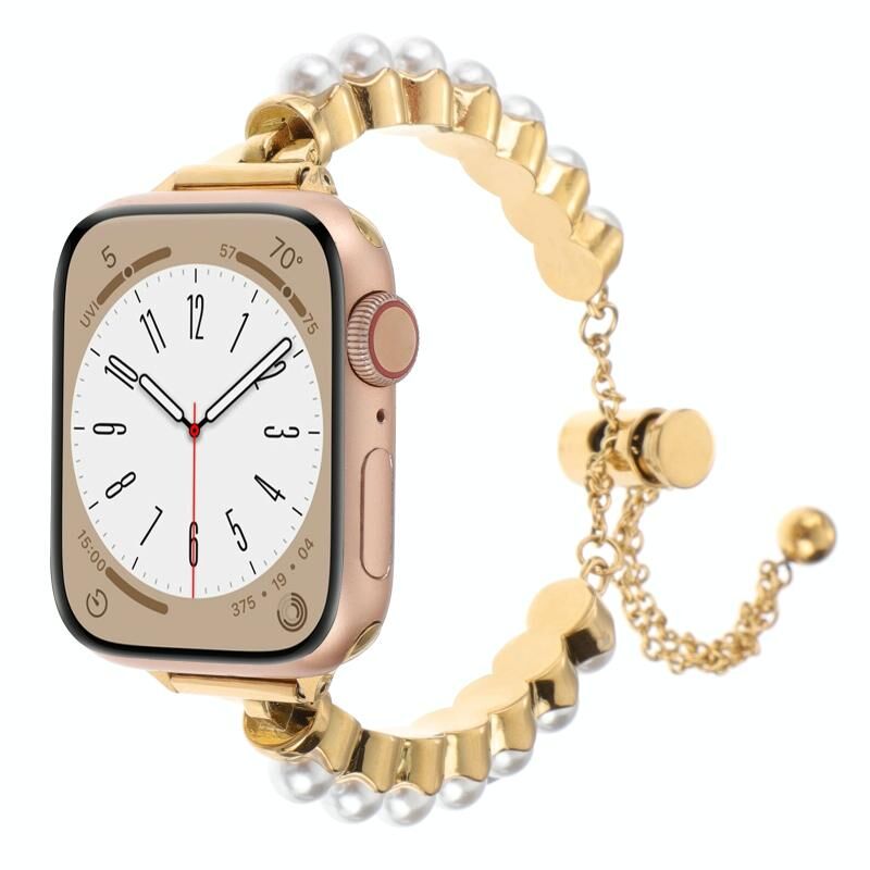 Για Apple Watch SE 2023 40mm Μαργαριταρένιο Βραχιόλι Μεταλλικό Λουράκι Ρολογιού (Χρυσός)