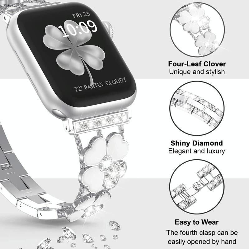 Για Apple Watch SE 2023 40mm Μεταλλικό Μπρατσέλι Diamond Petal (Μαύρο+Λευκό)