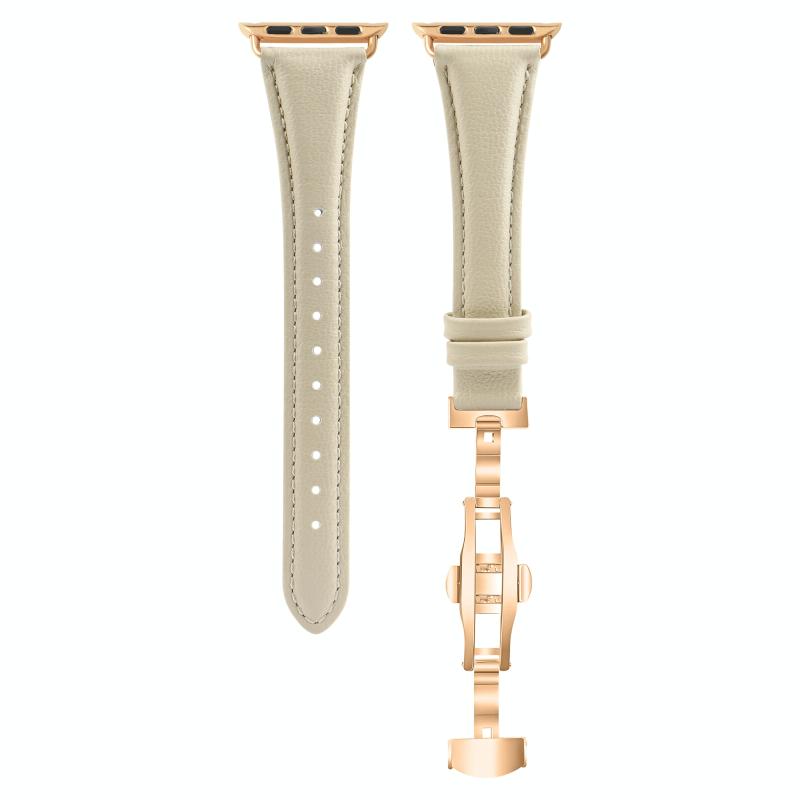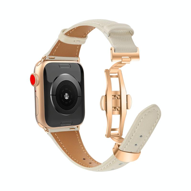 Για Apple Watch SE 2023 40mm Απλό Δερμάτινο Λουράκι με Αγκράφα Πεταλούδας (Σκούρο Καφέ+Ασημί)