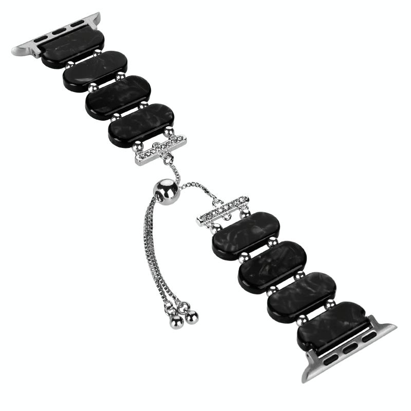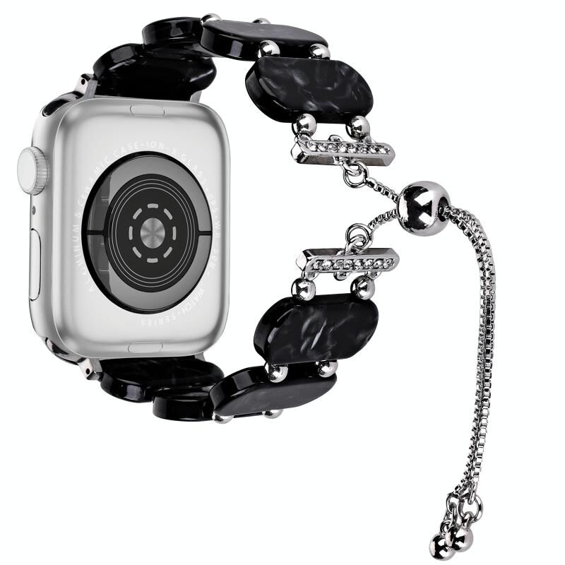 For Apple Watch SE 2023 40mm Resin Retractable Chain Watch Band(Black Flower)