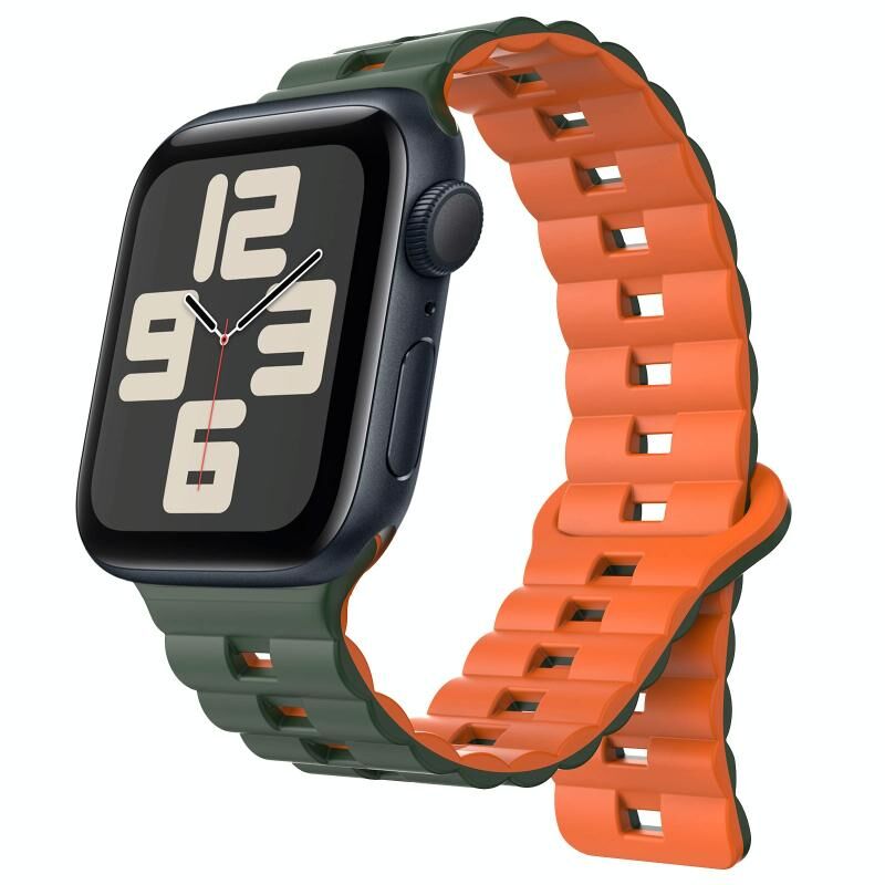 Για Apple Watch SE 2023 40mm, Λουρί Σιλικόνης με Μαγνητικό Κούμπωμα Αντίστροφης Πόρπης, Δύο Χρωμάτων (Γκρι+Πορτοκαλί)