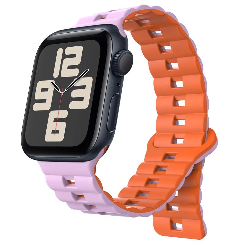 Για Apple Watch SE 2023 40mm, Λουρί Σιλικόνης με Μαγνητικό Κούμπωμα Αντίστροφης Πόρπης, Δύο Χρωμάτων (Γκρι+Πορτοκαλί)