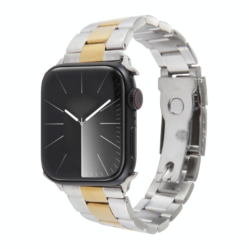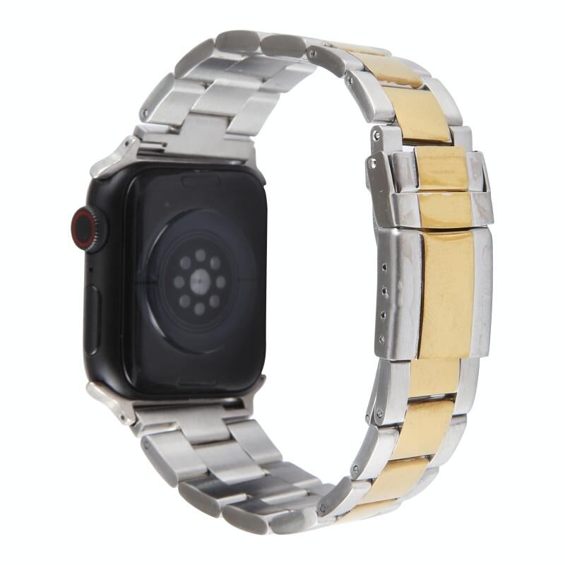 Για Apple Watch SE 2023 40mm, Ατσάλινο Μπρατσέλι Ρολογιού με Τρεις Χάντρες (Ασημί Χρυσό)