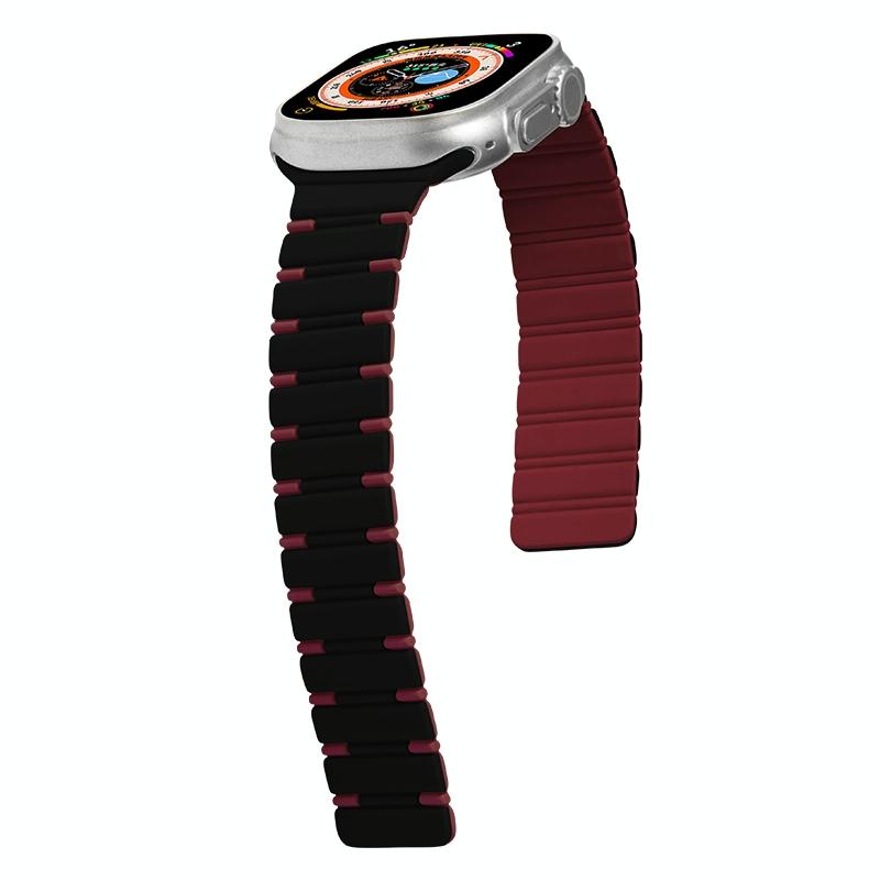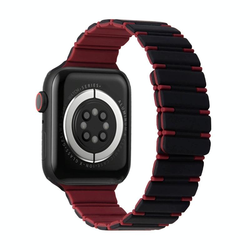 Λουράκι ρολογιού Apple Watch SE 2023 40mm, Διχρωμικό Μαγνητικό Σιλικόνης (Μαύρο Κρασοκόκκινο)