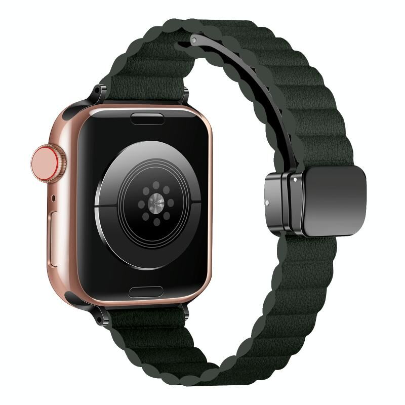 Για Apple Watch SE 2023 40mm, Μαγνητική Αγκράφα Διπλού Διπλώματος με Εφέ Κύματος Νερού, Στυλ: Λεπτή Έκδοση (Σκούρο πράσινο)