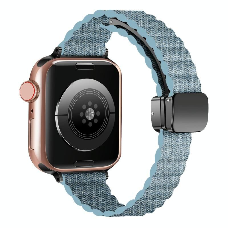 Για Apple Watch SE 2023 40mm, Μαγνητική Αγκράφα Διπλού Διπλώματος με Εφέ Κύματος Νερού, Στυλ: Λεπτή Έκδοση (Μπλε τζιν)