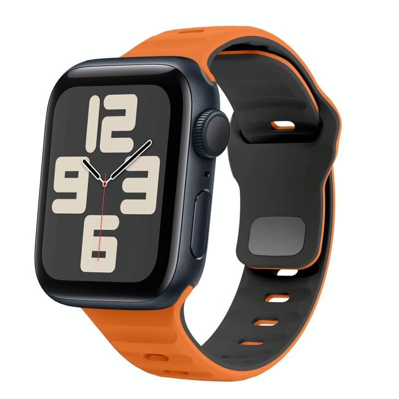 Για Apple Watch SE 2023 40mm Λουρί Σιλικόνης με Απλή Αγκράφα και Υφή Κύματος (Πορτοκαλί Μαύρο)