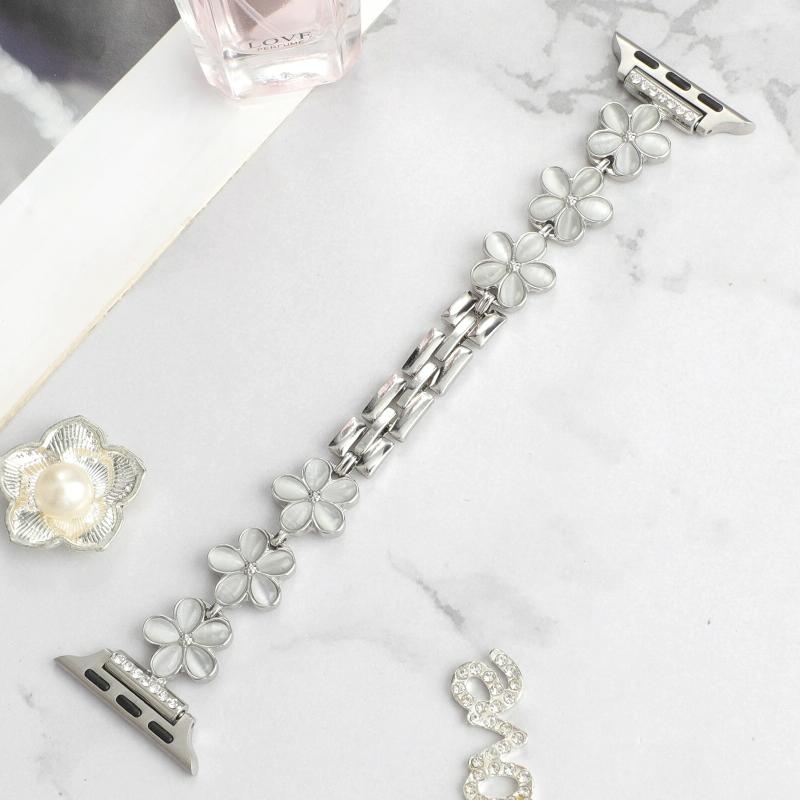 Για Apple Watch SE 2023 44mm Λουρί ρολογιού με αλυσίδα από κράμα ψευδαργύρου με 5 πέταλα λουλουδιού (Μαύρο)