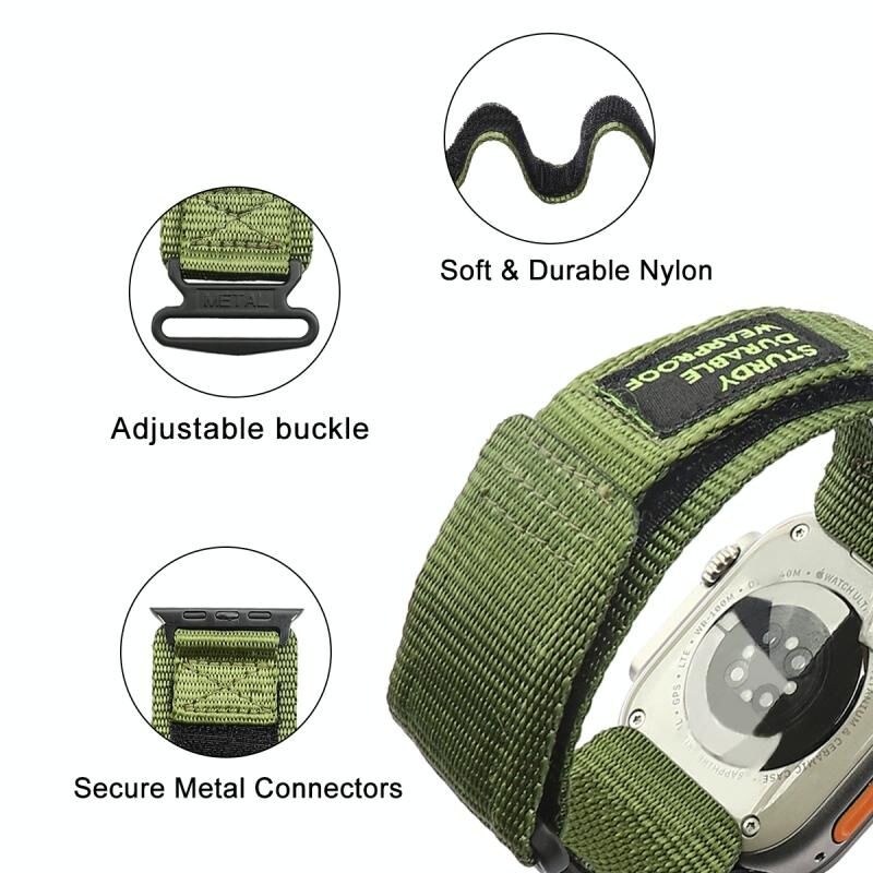 Για Apple Watch SE 2023 44mm AW Νάιλον Διτμή Λουρί Ρολογιού (Χακί πράσινο)