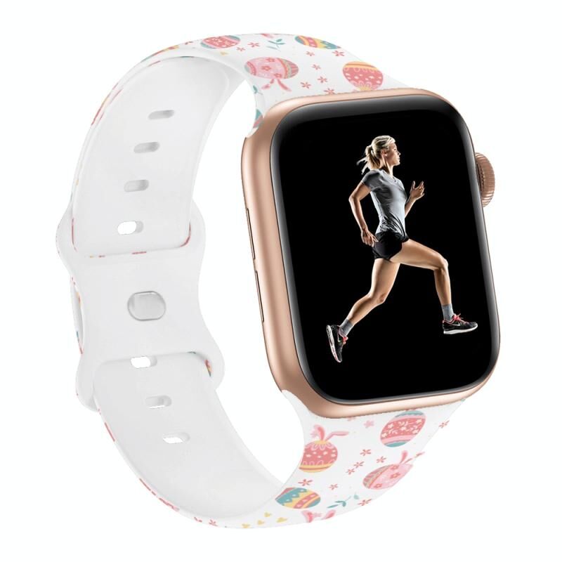 Για Apple Watch SE 2023 44mm Λουράκι Σιλικόνης με Αγκράφα Πεταλούδας με Εκτύπωση Πασχαλινή (Γαλάζιο Κουνελάκι)