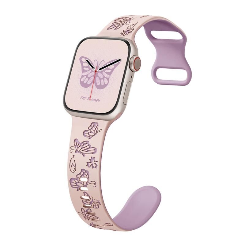 Για Apple Watch SE 2023 44mm Πολύχρωμο Μοτίβο Πεταλούδας Λουράκι Σιλικόνης για Ρολόι με Αγκράφα σε Σχήμα 8 (Λευκό Μαύρο)