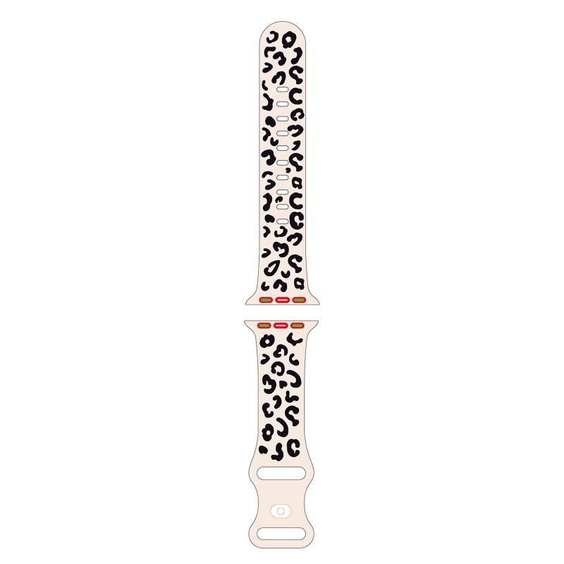 Για Apple Watch SE 2023 44mm Κυρτό Λουρί Σιλικόνης με Εκτύπωση Λεοπάρδαλης (Μαύρο Αστερόφωτο)