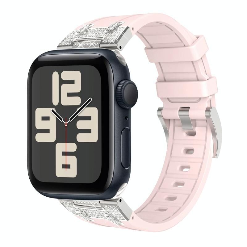 Για Apple Watch SE 2023 44mm Λουράκι Σιλικόνης Διαμαντένιος Αστρικός Ουρανός (ρόζ)