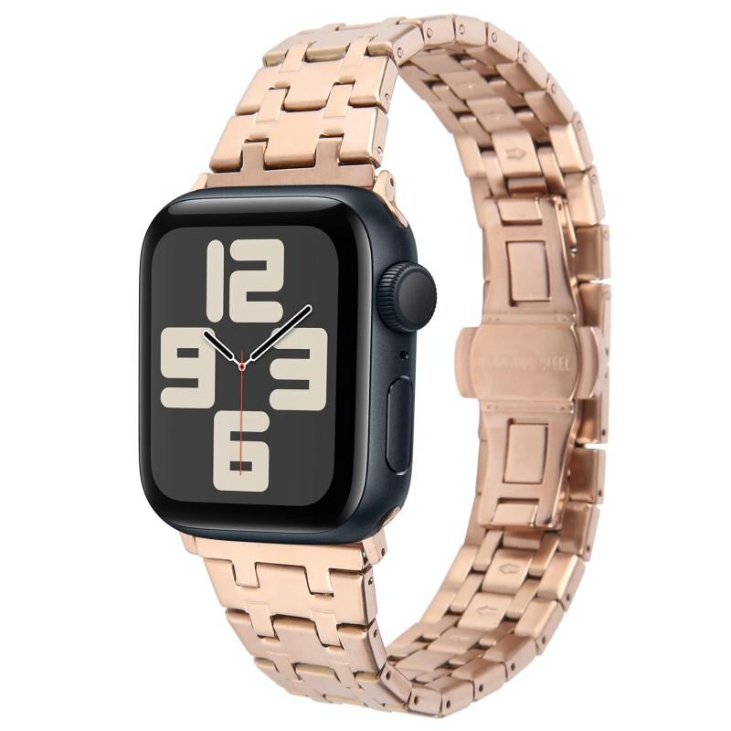 Για Apple Watch SE 2023 44mm Διπλό Δαχτυλίδι από Ανοξείδωτο Ατσάλι (Ροζ χρυσός)
