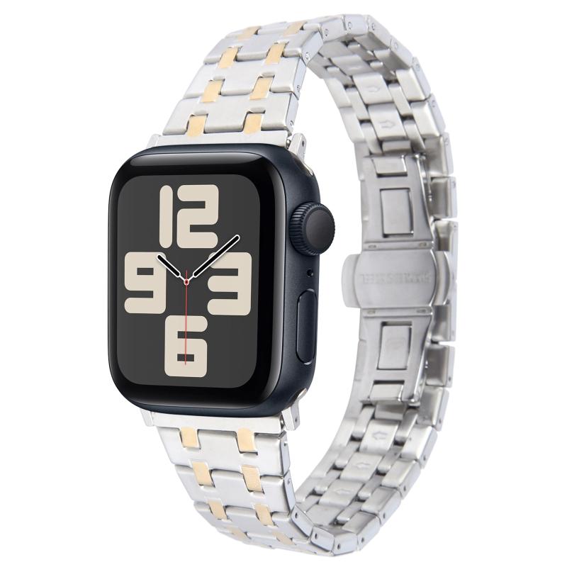 Για Apple Watch SE 2023 44mm Διπλό Δαχτυλίδι από Ανοξείδωτο Ατσάλι (Ασημί Χρυσό)