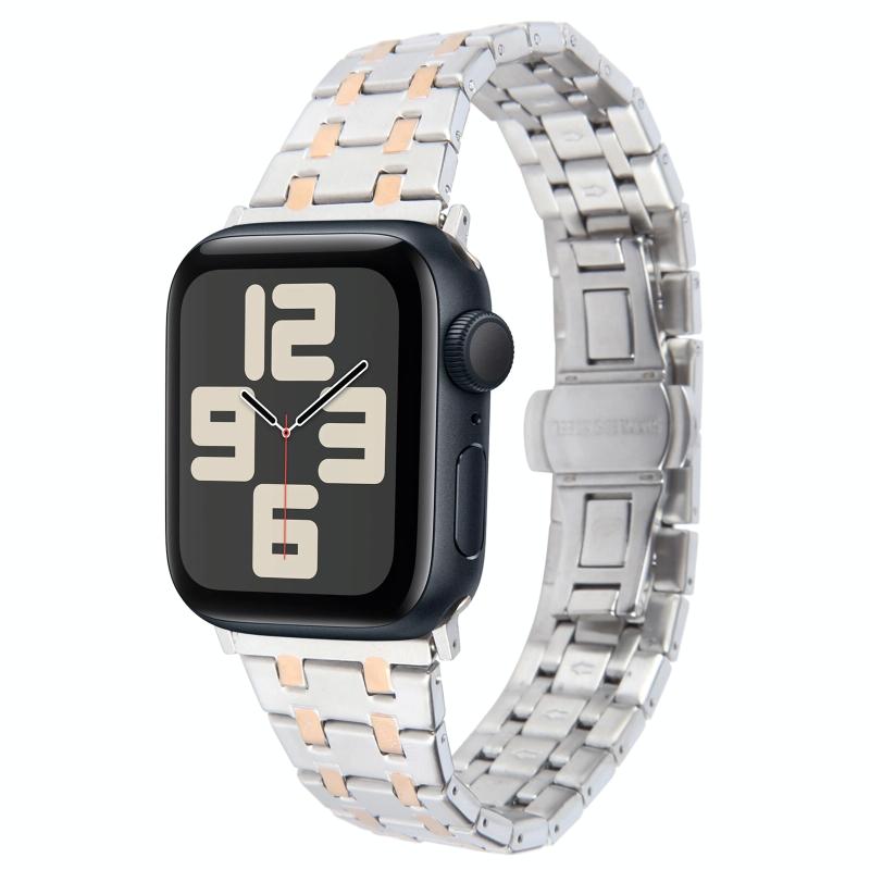 Για Apple Watch SE 2023 44mm Διπλό Δαχτυλίδι από Ανοξείδωτο Ατσάλι (Ασημί Ροζ Χρυσό)