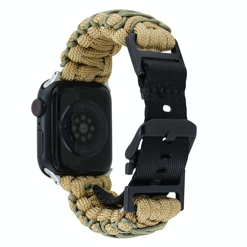 Για Apple Watch SE 2023 44mm Διπλό πλεγμένο λουρί ρολογιού με αγκράφα paracord (Ναυτικό Πράσινο Στρατού)