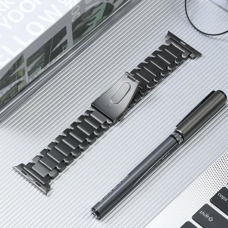 Για Apple Watch SE 2023 44mm Λουράκι Ρολογιού από Ατσάλι Τιτανίου με Πέντε Χάντρες (Μαύρο)
