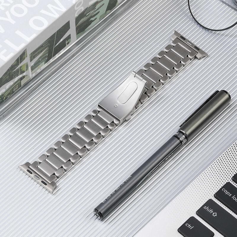 Για Apple Watch SE 2023 44mm Λουράκι Ρολογιού από Ατσάλι Τιτανίου με Πέντε Χάντρες (Μαύρο)