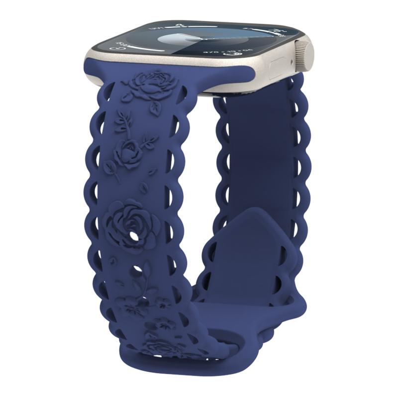 Για Apple Watch SE 2023 44mm Δαντέλα 3D Ροζ Χαραγμένο Λουράκι Σιλικόνης (Μαύρο)