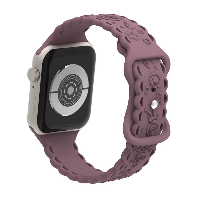 Για Apple Watch SE 2023 44mm Δαντέλα 3D Ροζ Χαραγμένο Λουράκι Σιλικόνης (Μαύρο)