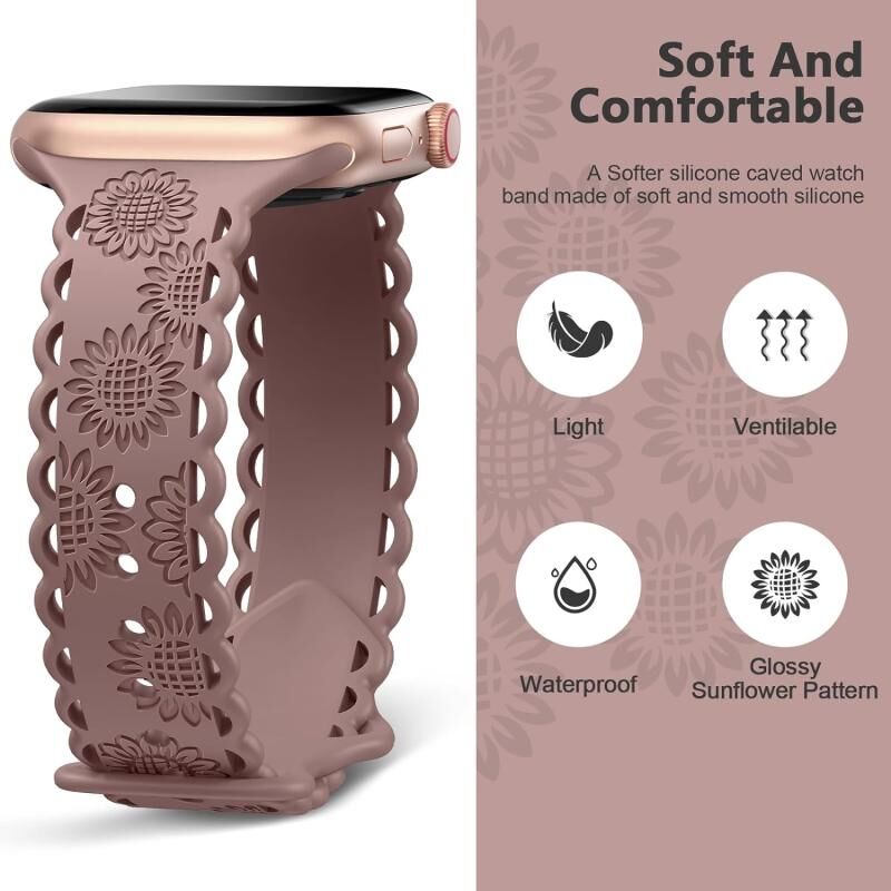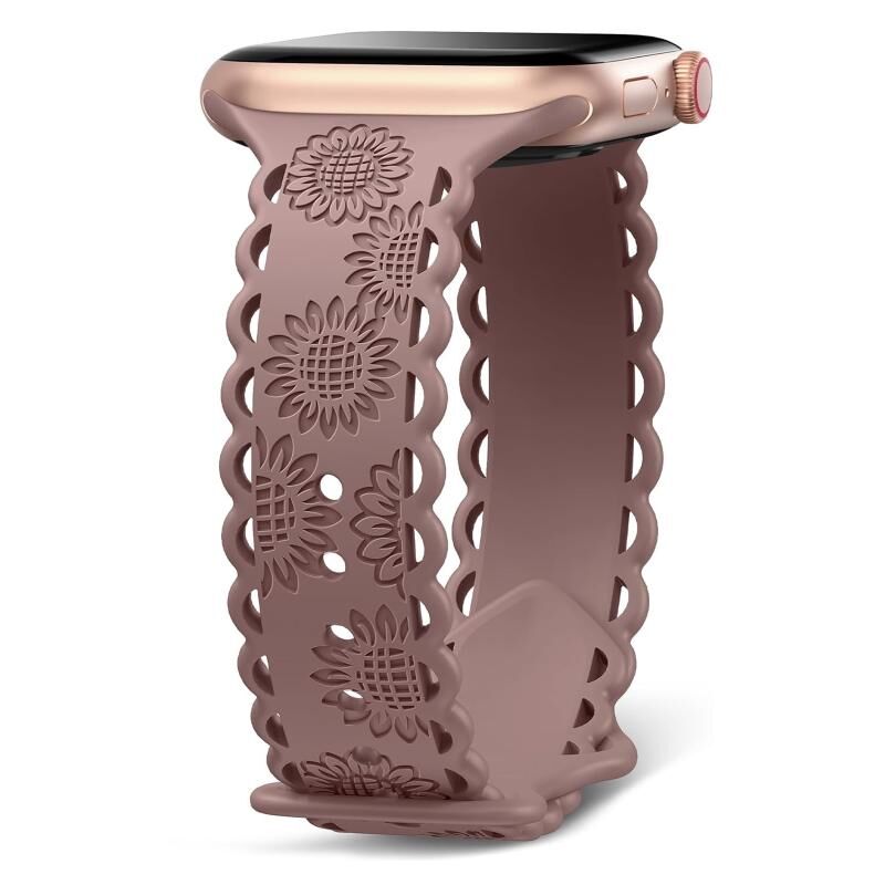 Για Apple Watch SE 2023 44mm Δερμάτινο Λουρί Σιλικόνης με Δαντέλα και Ηλιοτρόπιο (Μωβ καπνιστό)