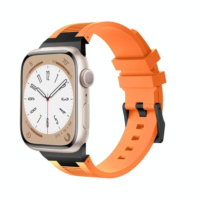 Για Apple Watch SE 2023 44mm Λουράκι Σιλικόνης Υγρού Λάστιχου (Μαύρο Πορτοκαλί)