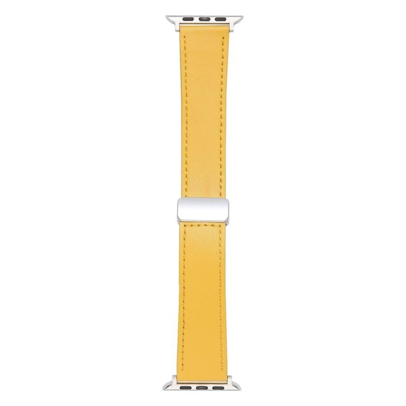 Για Apple Watch SE 2023 44mm Μαγνητικό Κούμπωμα Δερμάτινο Λουράκι Ρολογιού (Κίτρινο)