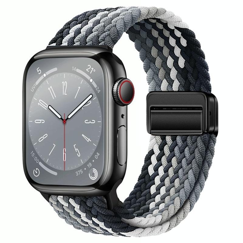 Λουράκι Apple Watch SE 2023 44mm Νάιλον με Μαγνητικό Κούμπωμα (Γκρι Μαύρο)