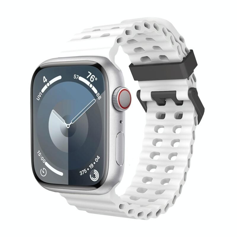 Για Apple Watch SE 2023 44mm Λουρί Σιλικόνης για Ρολόι Ocean Διπλής Σειράς με Οπές (Λευκό)