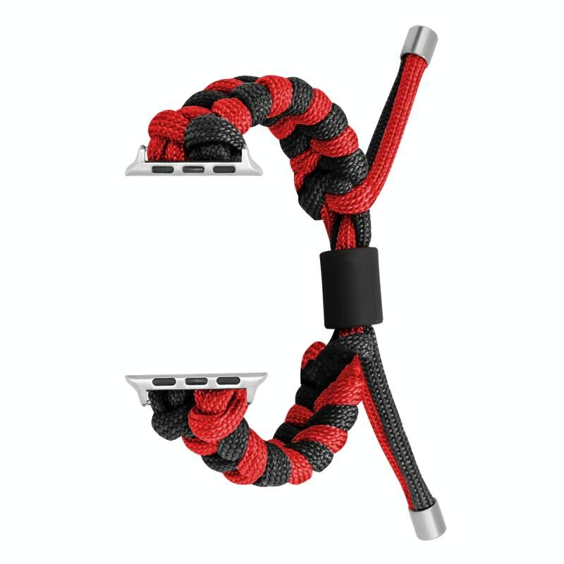 Για Apple Watch SE 2023 44mm Λουρί Παρακολούθησης με χάντρες σιλικόνης πλεγμένο με κορδόνι Paracord σε στυλ ουράς ψαριού (Μαύρο Κόκκινο)