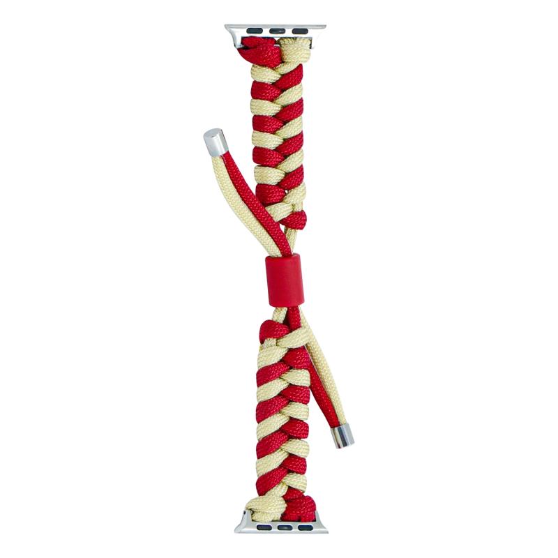 Για Apple Watch SE 2023 44mm Λουρί Παρακολούθησης με χάντρες σιλικόνης πλεγμένο με κορδόνι Paracord σε στυλ ουράς ψαριού (Κόκκινο Φωτεινό Κίτρινο)