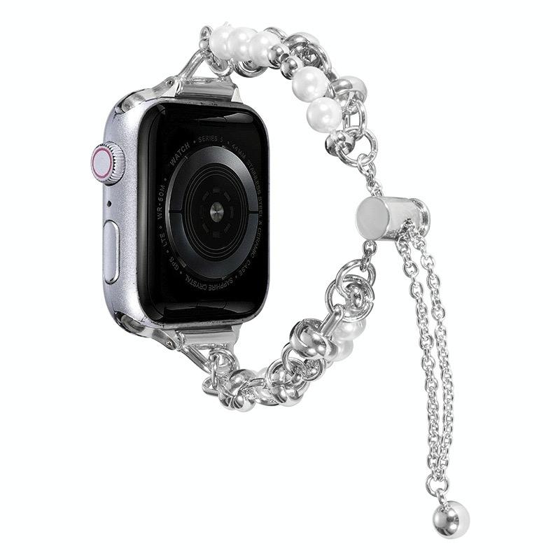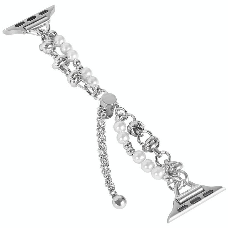 Για Apple Watch SE 2023 44mm Μαργαριταρένιο Βραχιόλι Μεταλλικό Λουράκι Ρολογιού (Ασημί)