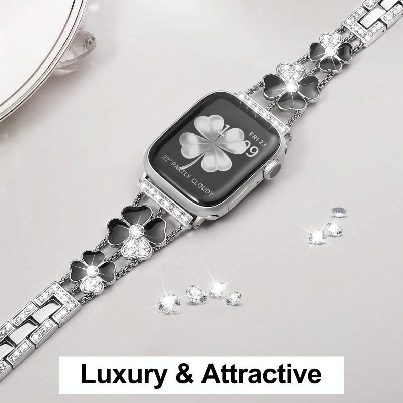 Για Apple Watch SE 2023 44mm Μεταλλικό Μπρατσέλι Diamond Petal (Μαύρο+Λευκό)