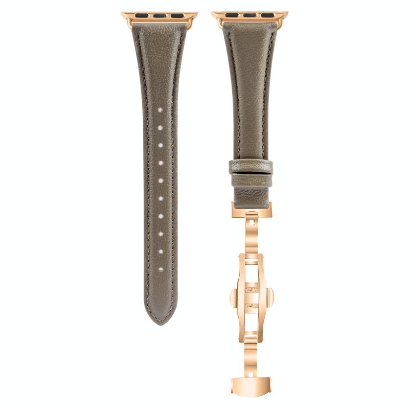 For Apple Watch SE 2023 44mm Plain Leather Butterfly Buckle Watch Band(Gray+Rose Gold)