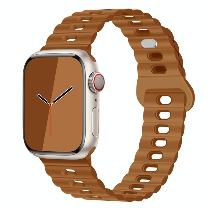 For Apple Watch SE 2023 44mm Reverse Buckle Breathable Silicone Watch Band(Brown)